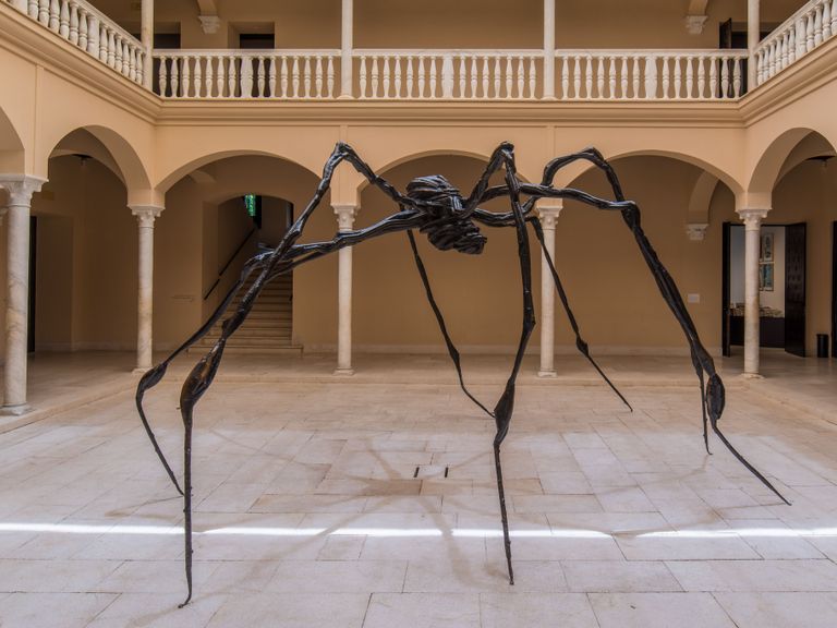 A partir de sus figuras esculpidas en madera en los años 40, Louise Bourgeois experimentó con la representación de fragmentos del cuerpo humano. Pero serán sus famosas arañas de bronce las que le harán mundialmente célebre, por lo que para la ocasión se instaló en el Museo Picasso Málaga la escultura Araña (1996), de casi 8 metros de diámetro y más de 3 metros de altura. La artista representó así a su madre: como una enorme arácnida, paciente, protectora e incansable tejedora, en directa alusión al oficio que ésta desempeñó en el taller familiar de restauración de tapices.