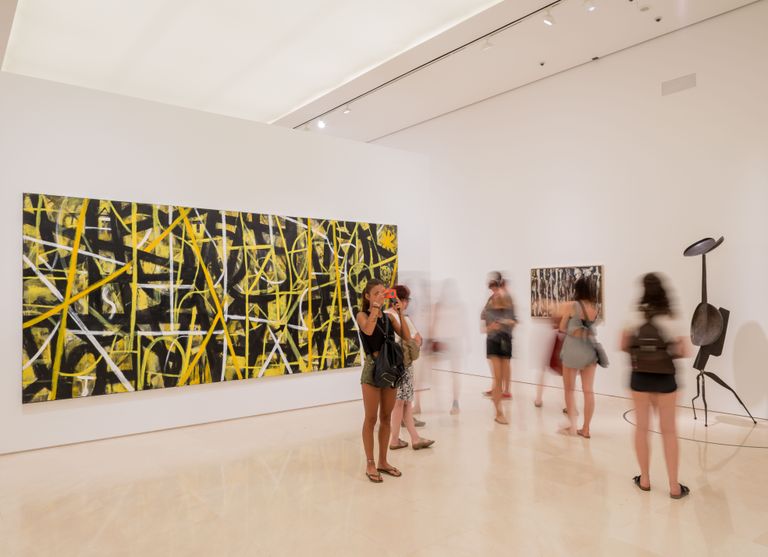 Visitantes frente a Soñé que revelabas XV de obra de Juan Uslé, 2002. Foto: Jesús Domínguez ©Museo Picasso Málaga