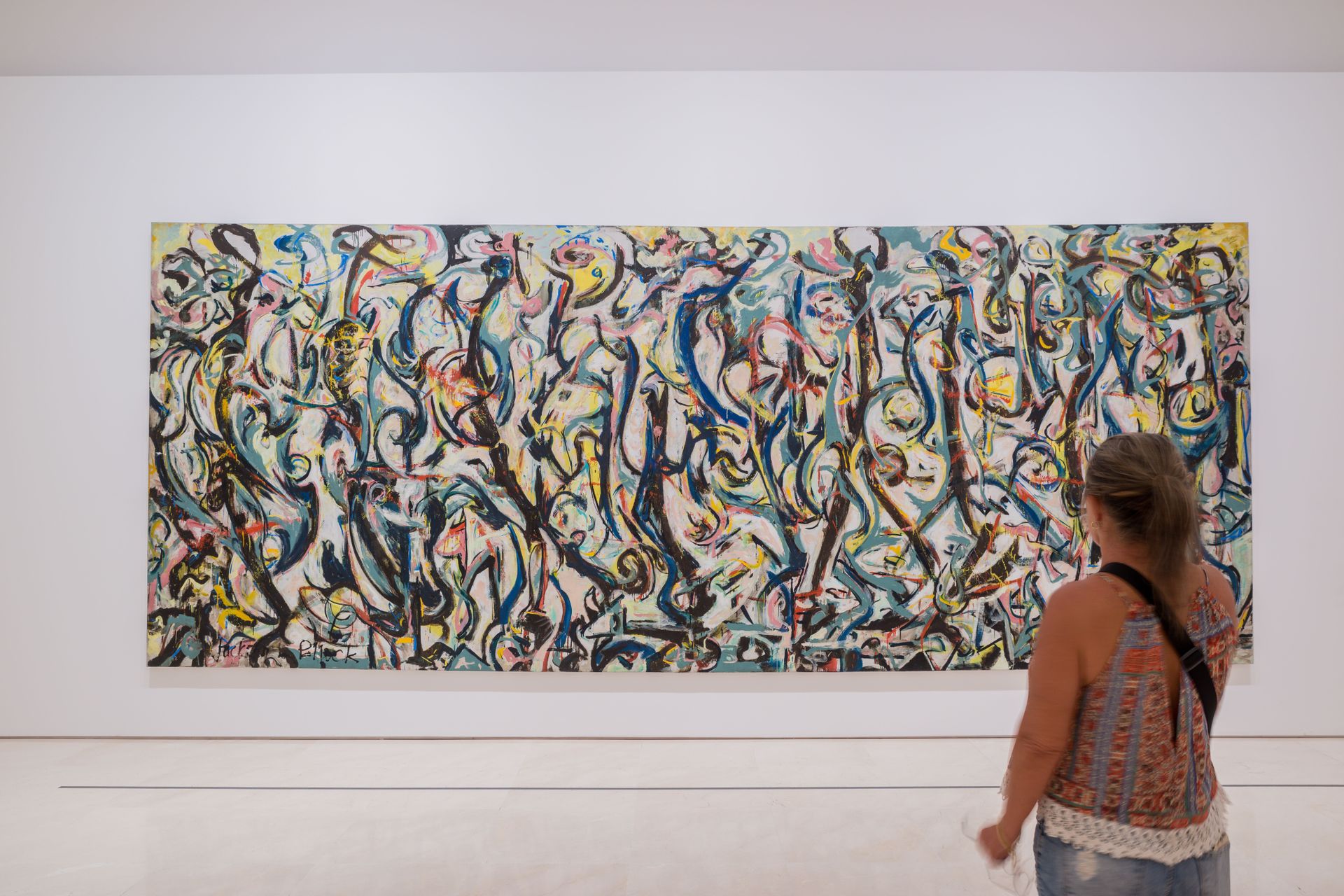 Un visitante frente a Mural de Jackson Pollock, 1943. Foto: Jesús Domínguez ©Museo Picasso Málaga