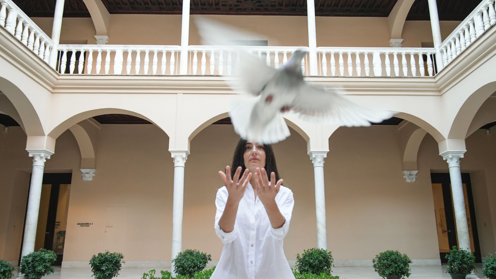 Poco después del amanecer del 8 de abril, una paloma blanca ha emprendido el vuelo desde el patio del Palacio de Buenavista para poner la atención de forma simbólica en los conflictos bélicos que siguen provocando la pérdida de vidas humanas y migraciones forzadas en el mundo.
